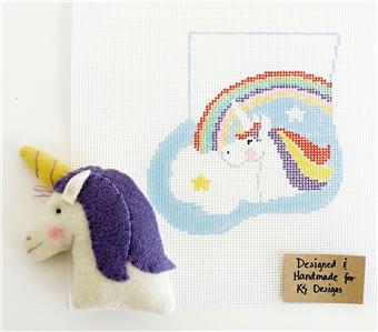 Canvas Set ~ UNICORN & RAINBOW CANVAS SET Needlepoint Mini Stocking Ornament by Kathy Schenkel