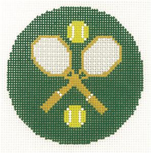 Sports Round ~ Tennis Rackets & Balls 3" Rd. 18 mesh handpainted Needlepoint Canvas Ornament by LEE