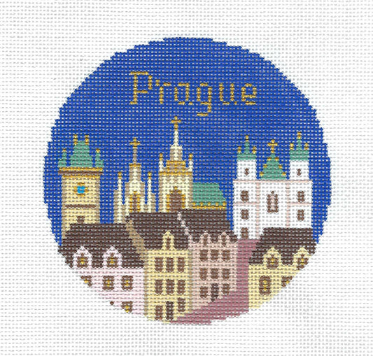 Travel Round ~ Prague, Czech Republic 18 Mesh handpainted 4.25" Needlepoint Canvas by Silver Needle