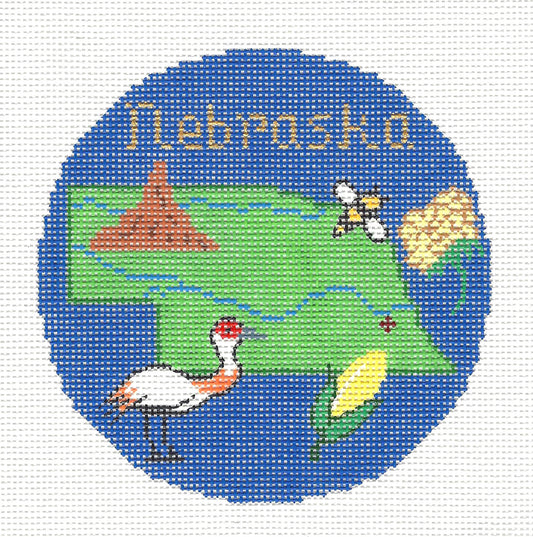 Travel Round ~ KANSAS handpainted 4.25" 18 Mesh Needlepoint Canvas Ornament by Silver Needle