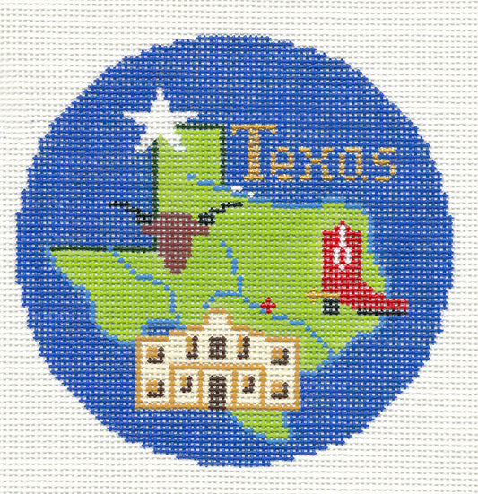 Travel Round ~ STATE of TEXAS with the ALAMO handpainted 4.25" Needlepoint Canvas by Silver Needle