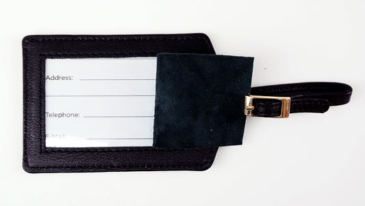 Accessory ~ LUGGAGE ID TAG Black Smooth Leather for 3" Rd. Needlepoint Canvas by LEE