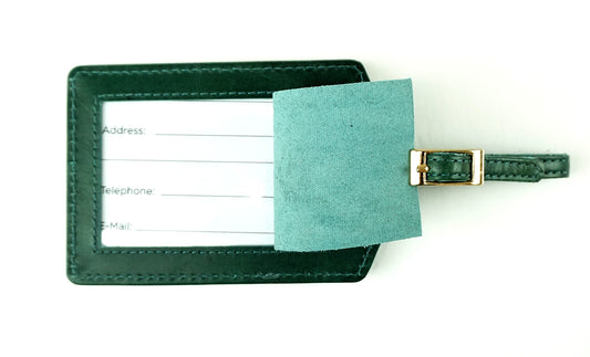 Accessory ~ LUGGAGE ID TAG Green textured Leather for 3" Round Needlepoint Canvas by LEE