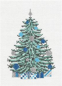 Tree Canvas ~ Christmas Tree Blue & Silver Tree handpainted 18 Mesh Needlepoint Canvas by Needle Crossings