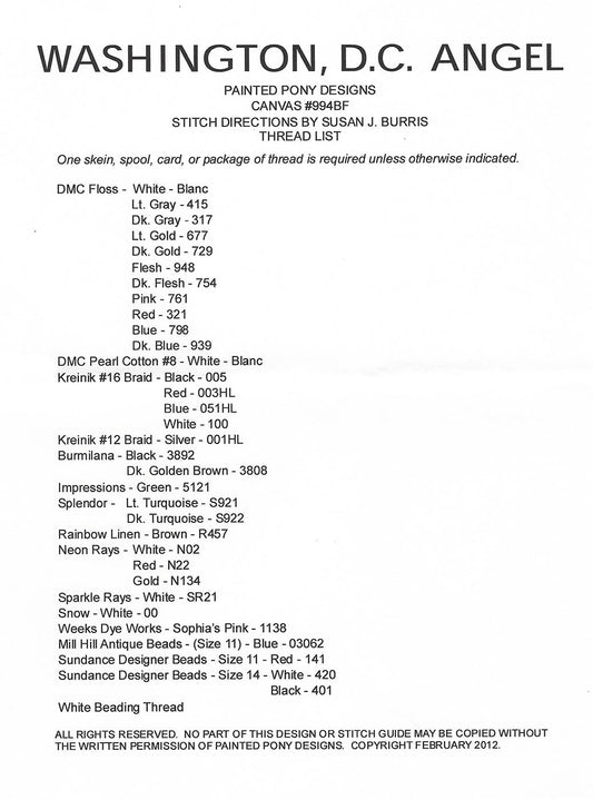 Angel ~ Washington, DC Angel & Charms & STITCH GUIDE Handpainted Needlepoint Canvas by Painted Pony