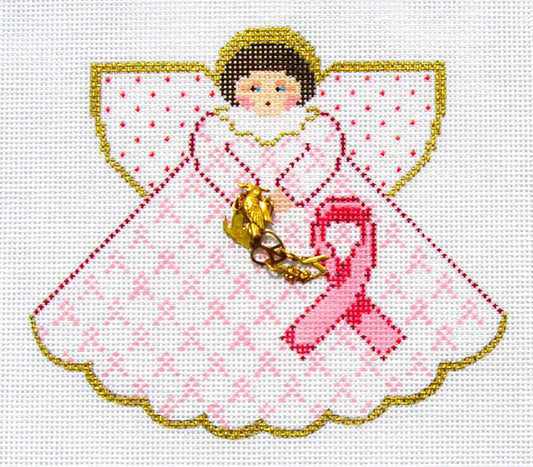 Angel ~ Pink Breast Cancer Awareness Angel & STITCH GUIDE handpainted 18 Mesh Needlepoint Canvas by Painted Pony