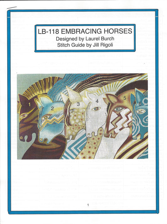 Embracing Horses & STITCH GUIDE Large handpainted Canvas design by Laurel Burch from Danji
