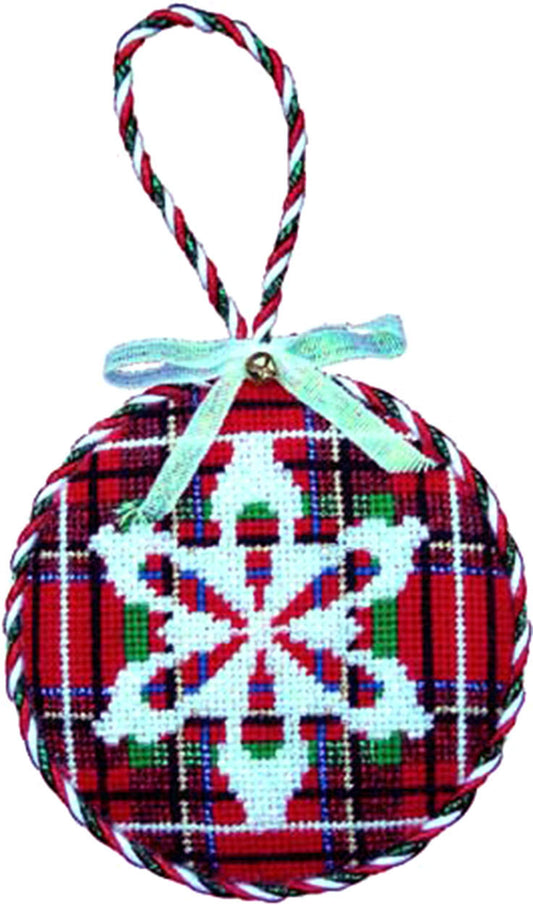 Christmas ~ Snowflakes On Plaid 3.5" Round handpainted Needlepoint Ornament Assoc.Talents