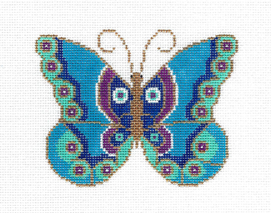 Elegant BLUE BUTTERFLY handpainted 18 Mesh Needlepoint Ornament Canvas by JP Needlepoint