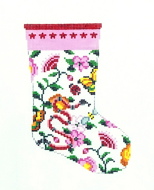 Mini Stocking ~ Floral Meadow Mini Stocking Design handpainted Needlepoint Canvas by C'ate La Vie