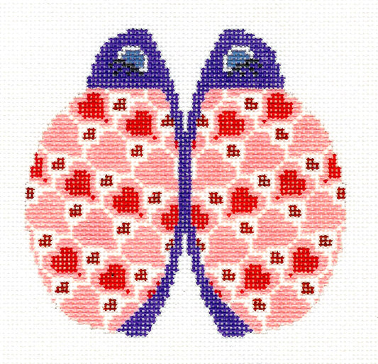 Canvas ~ Ladybug with Multiple Pink Hearts Beanbag or Frame Weight 18 Mesh handpainted Needlepoint Canvas by LEE
