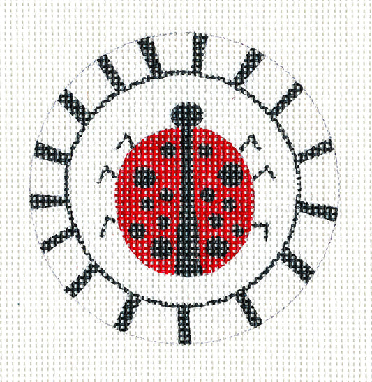3" Round ~ Lady Bug on Yellow Background handpainted Needlepoint Canvas 3" RD. for Ornament or Insert