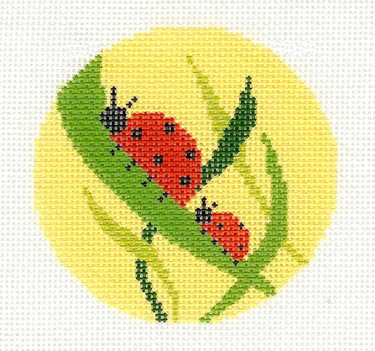 Round ~ 2 Ladybugs in the Grass handpainted 3" Round Needlepoint Canvas by LEE