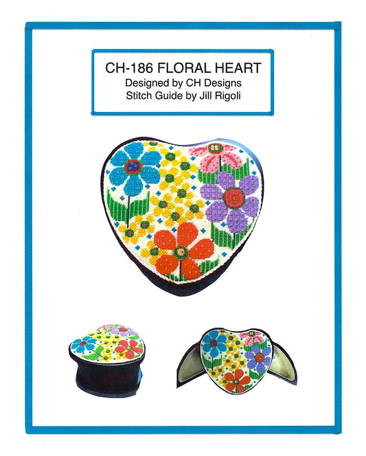 Heart ~ FLORAL HEART & STITCH GUIDE SET handpainted 18 Mesh Needlepoint Canvas by CH Designs from Danji