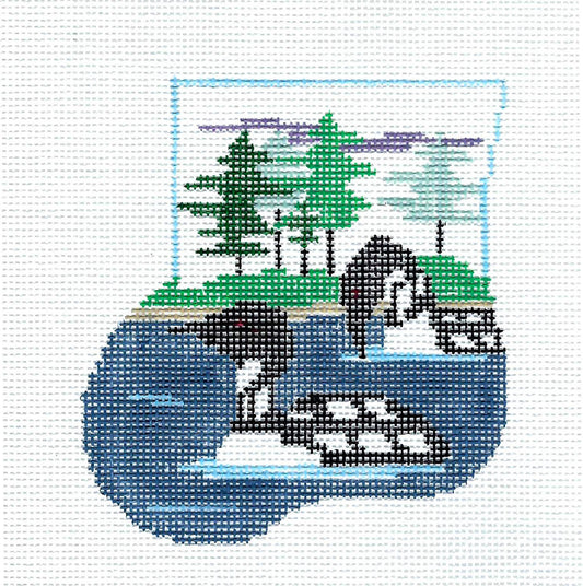 CANVAS SET ~ LOONS on LAKE CANVAS SET ~ HP Needlepoint Mini Sock Ornament by Kathy Schenkel