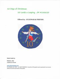 12 Days of Christmas 10 Lords Leaping & STITCH GUIDE on HP Needlepoint Canvas by JulieMar