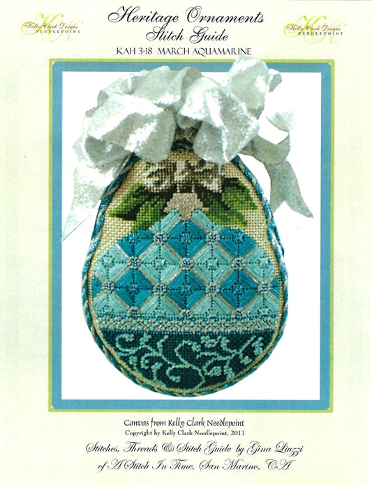 12 Months ~ Aquamarine for MARCH Monthly Ornament & STITCH GUIDE handpainted Needlepoint Canvas by Kelly Clark