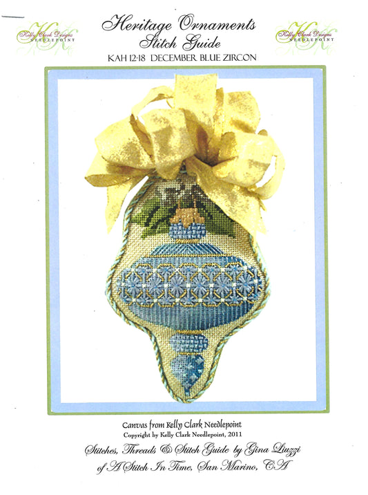 12 Month ~ Blue Zircon & Gold Month of DECEMBER Monthly Ornament & Stitch Guide Needlepoint Canvas by Kelly Clark