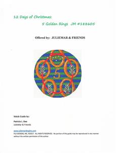12 Days of Christmas 5 Gold Rings with STITCH GUIDE & HP Needlepoint canvas Juliemar