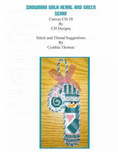 Large Candy Cane Snowman w/ Scarf Needlepoint Canvas & Stitch Guide~ by Danji Designs