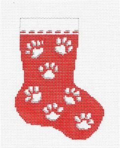 Dog Mini Stocking ~ Paw Prints on Red Mini Stocking handpainted 13 Mesh Needlepoint Canvas Needle Crossings