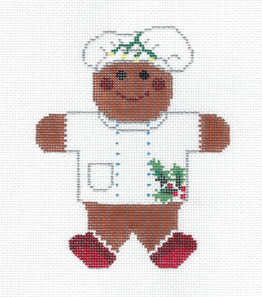 Chef Gingerbread Man in Apron Ornament HP Needlepoint Canvas by Whimsy & grace