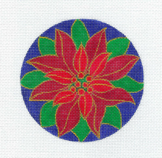Christmas ~ Elegant Red, Green & Gold Poinsettia Blossom handpainted Needlepoint Canvas by Juliemar
