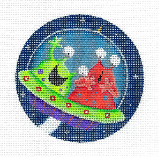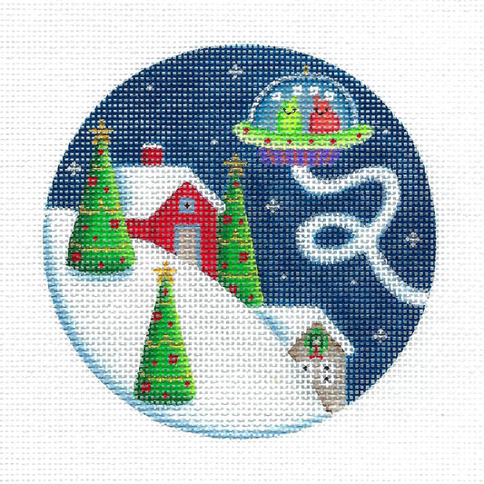 4" Round ~ Alien Christmas Visitors 18 Mesh 4" Rd. Ornament handpainted Needlepoint Canvas by Rebecca Wood