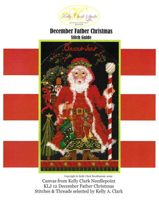 CHRISTMAS ~ December Father Christmas & STITCH GUIDE SET handpainted 18 Mesh Needlepoint Canvas by Kelly Clark