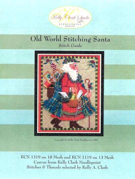 Kelly Clark ~ Elegant Old World STITCHING SANTA CLAUS & Stitch Guide SET handpainted 18 Mesh Needlepoint Canvas by Kelly Clark