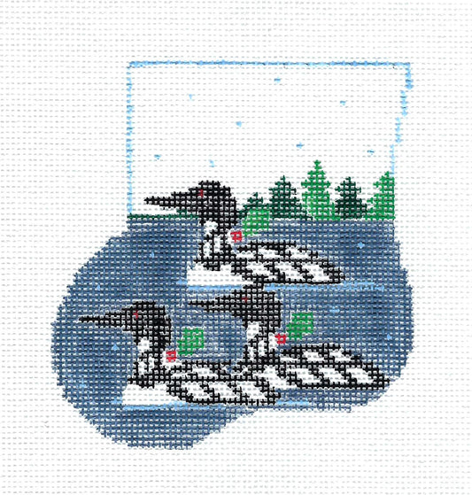 CANVAS SET ~ 3 LOONS on a LAKE CANVAS SET ~ 18 mesh HP Needlepoint Mini Stocking Ornament by Kathy Schenkel