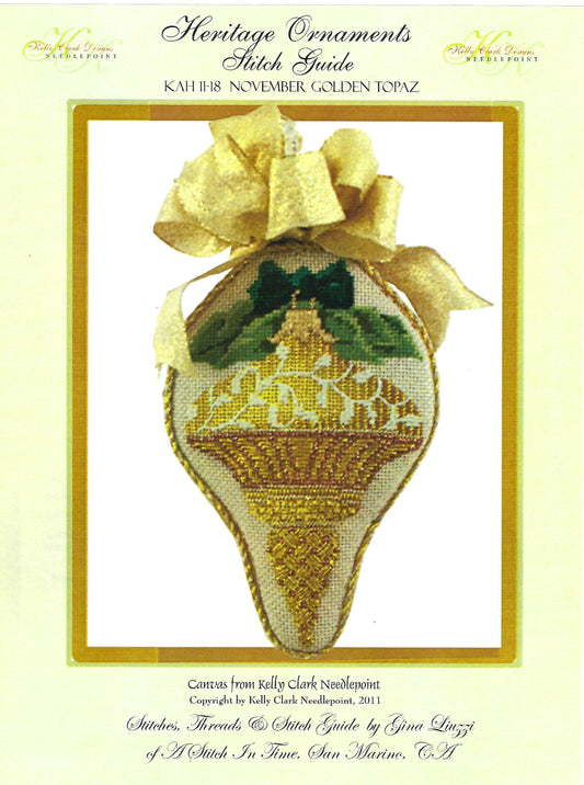 Kelly Clark Canvas SET ~ Golden Topaz Ornament & STITCH GUIDE SET handpainted Needlepoint Canvas by Kelly Clark