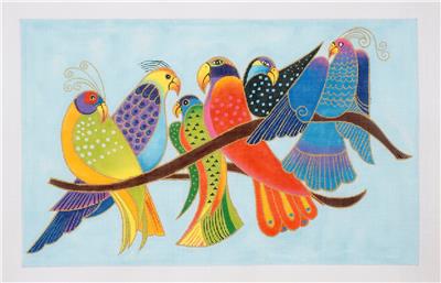 Bird Canvas ~ 6 Tropical Songbirds 18 mesh handpainted Needlepoint Canvas by Laurel Burch from Danji