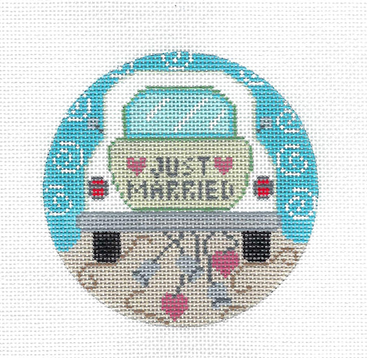 Beautiful Wedding ~ JUST MARRIED BRIDE & GROOM CAR handpainted Needlepoint Canvas by CH Designs from Danji