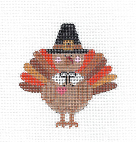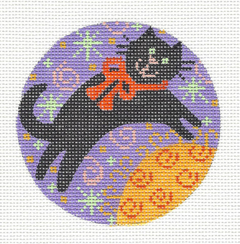 Autumn Bird ~ Black Crow Standing on a Pumpkin 4" Ornament on 18m Handpainted Needlepoint Canvas by CH Designs