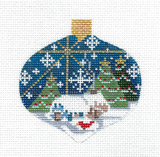 Bauble ~ Winter Scene Snow Bauble Handpainted Needlepoint Canvas by CH Designs from Danji