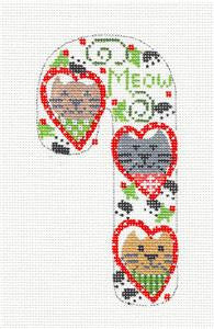Medium Candy Cane Hearts Cats & Kitties MEOW Ornament on handpainted Needlepoint Canvas from Danji Designs