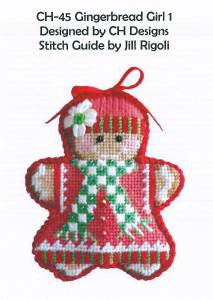 Gingerbread Girl #2 Children's Needlepoint Canvas Ornament and STITCH GUIDE by CH Design from Danji Designs
