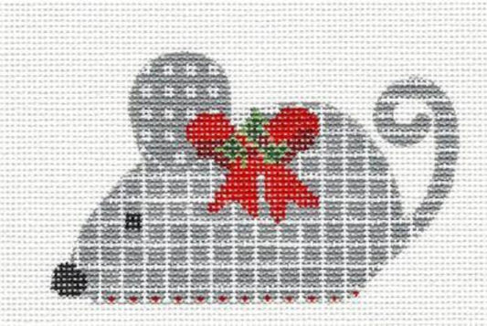 Mouse ~ Gray plaid Mouse with Red Bow & Holly handpainted Needlepoint Canvas by CH Designs from Danji