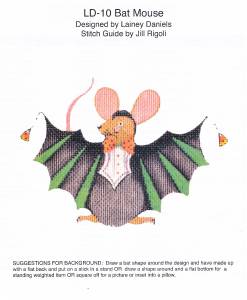 Mouse ~ Halloween Bat Mouse handpainted Needlepoint Canvas & STITCH GUIDE by Lainey Daniels from Danji