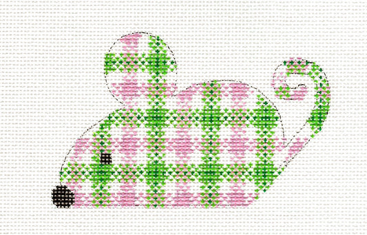 Mouse ~ Pink & Green Plaid Springtime Mouse 18 Mesh handpainted Needlepoint Canvas by CH Designs ~ Danji
