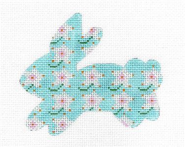Bunny Rabbit Canvas ~ Floral Blue Bunny Ornament handpainted Needlepoint Canvas by CH Design Danji