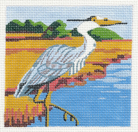 Bird Canvas ~ Turquoise Bird in Scarf & Hat handpainted Needlepoint Canvas by CH Designs from Danji
