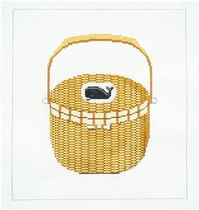 Nantucket Canvas ~ Nantucket Basket with Scrimshaw Whale on the Lid 4" Sq. 18 Mesh handpainted Needlepoint Canvas by MBM Designs
