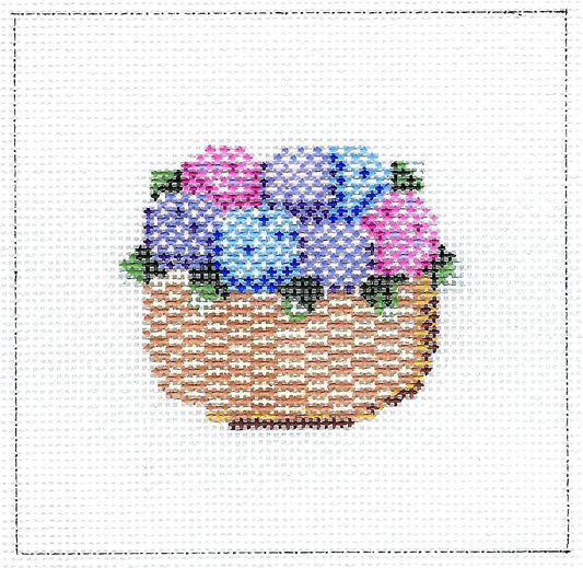 Nantucket Canvas ~ Nantucket Basket of Blue and Purple Hydrangea Blossoms needlepoint canvas by MBM Designs