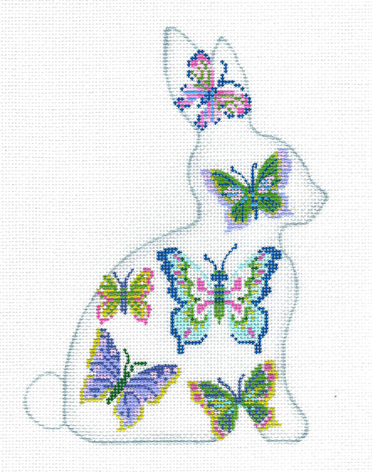 Rabbit ~ Butterfly Seated Bunny Rabbit handpainted Needlepoint Ornament by Kelly Clark