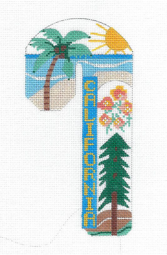CALIFORNIA State Destination Lg. Candy Cane handpainted Needlepoint Canvas by CH Design from Danji