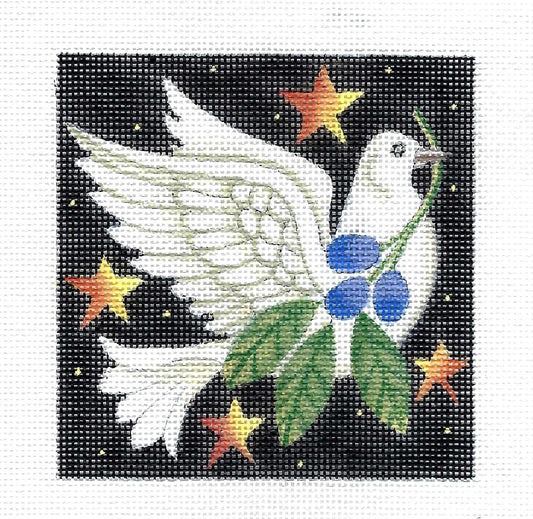 Bird ~ Holiday Dove with Olive Branch 4" Square handpainted 18 Mesh Needlepoint Canvas by Maggie