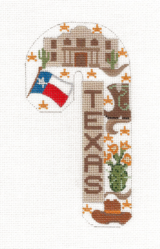 Candy Cane ~ TEXAS State Destination Large Candy Cane 18 Mesh Needlepoint Canvas CH Designs by Danji