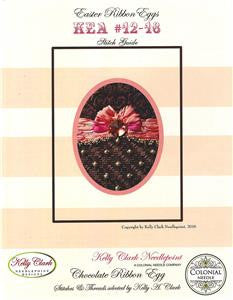 Kelly Clark ~ Easter Chocolate & Pink Ribbon Egg handpainted Needlepoint Canvas & STITCH GUIDE